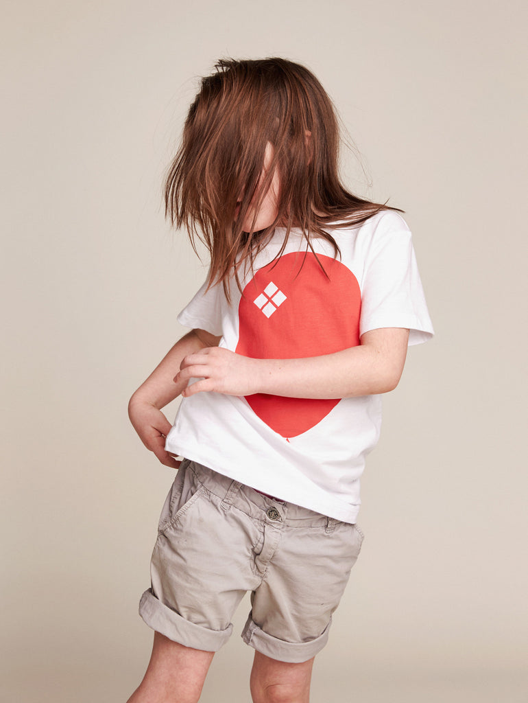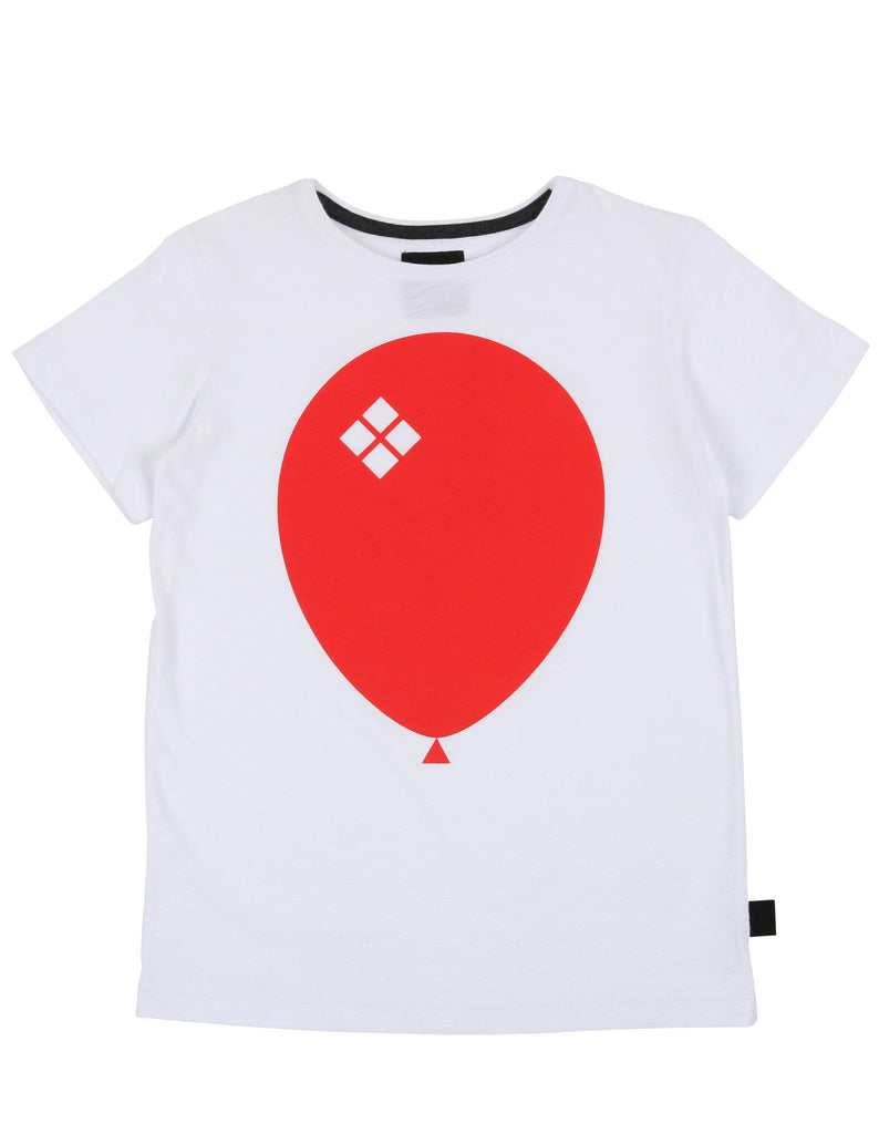 ONE TEE is our classic cut t-shirt, simple but perfect. This one with an iconĀ red balloon print on white slub jersey.Ā
