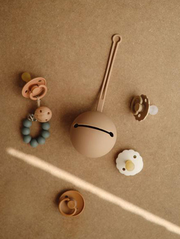 Designed in Sweden, the pacifier case is made from food-grade silicone in timeless colors and can be easily looped onto a diaper bag or stroller. Suitable for any pacifier brand.