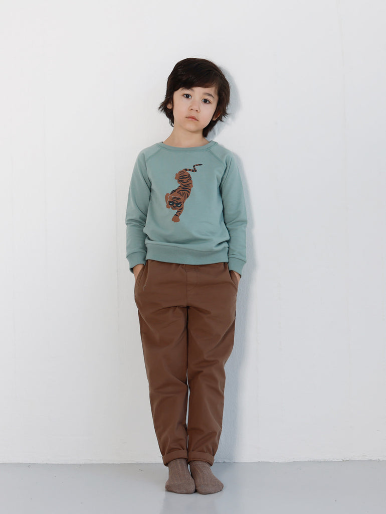 This sweatshirt will be a brilliant addition to your kids's wardrobe and it's perfect for layering over a t-shirt or a vest. Raglan cut with round neck and ribbed cuff at sleeve end and at waist. Made of 100% organic cotton of the highest quality in Portugal.