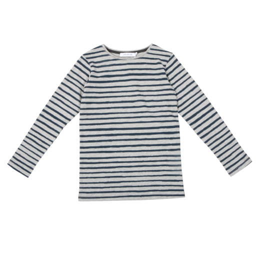 Långärmad t-shirt i gråmelerad med marinblå ränder.