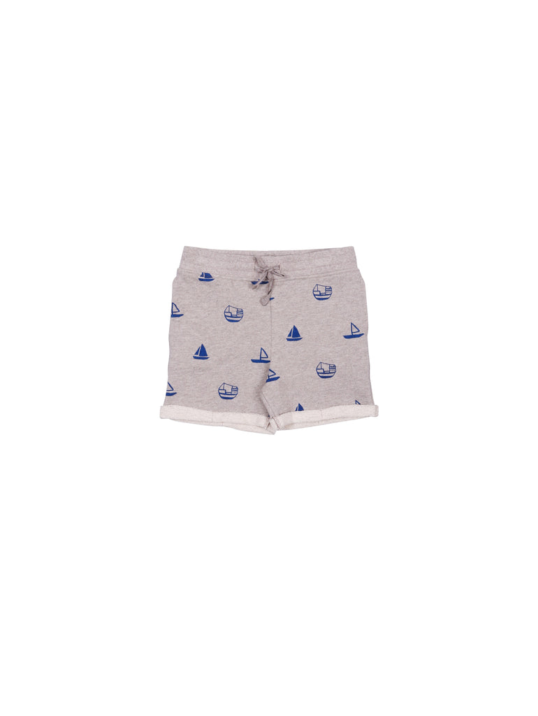 Shorts med ribbad elastisk midja och justerbar dragsko. Överallt båttryck. Liten vikning vid benen. Tillverkad med 100% mjuk ekologisk bomull i Portugal.